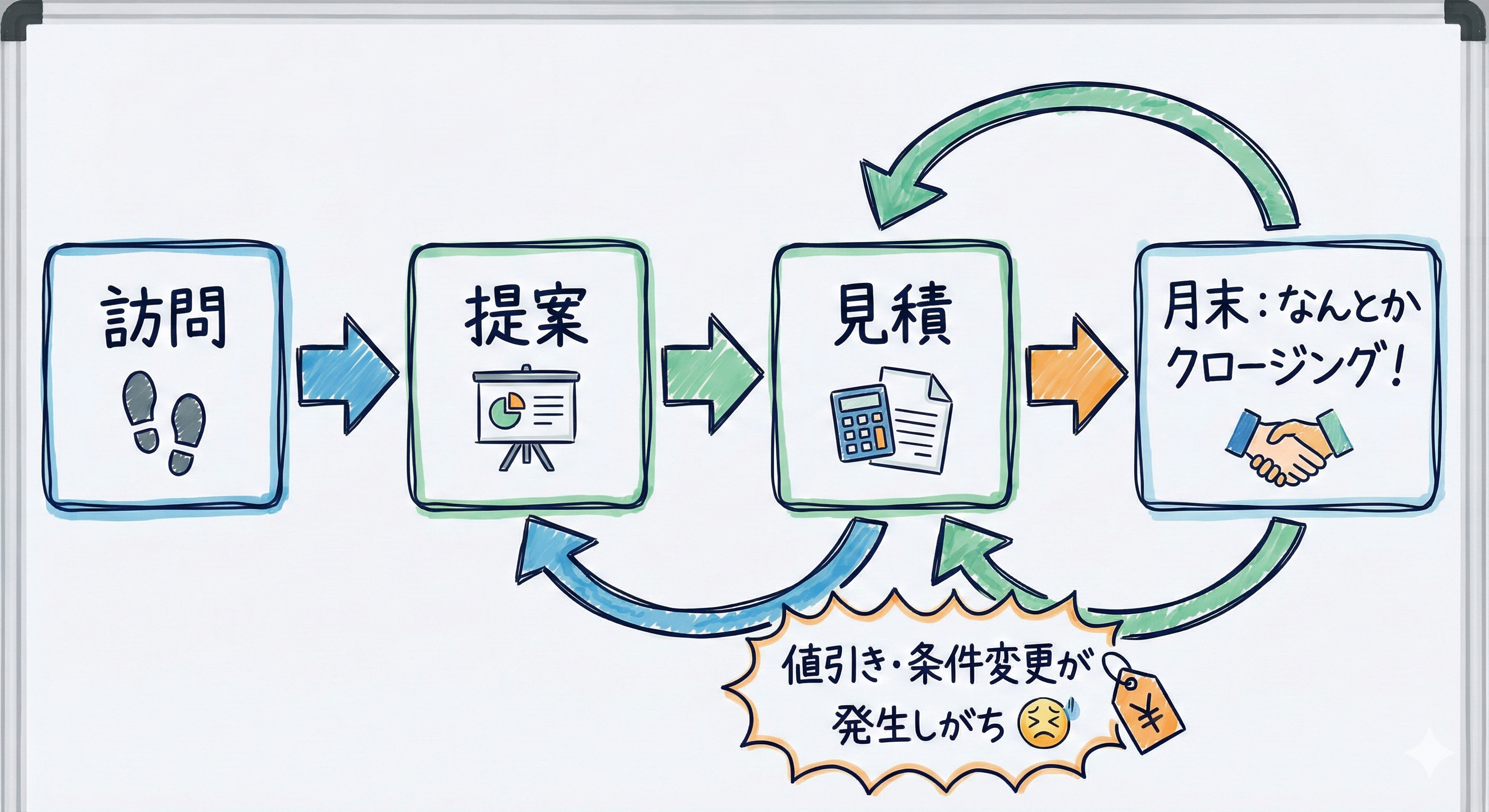 - 長期的な関係構築より「とりあえず受注」が優先される